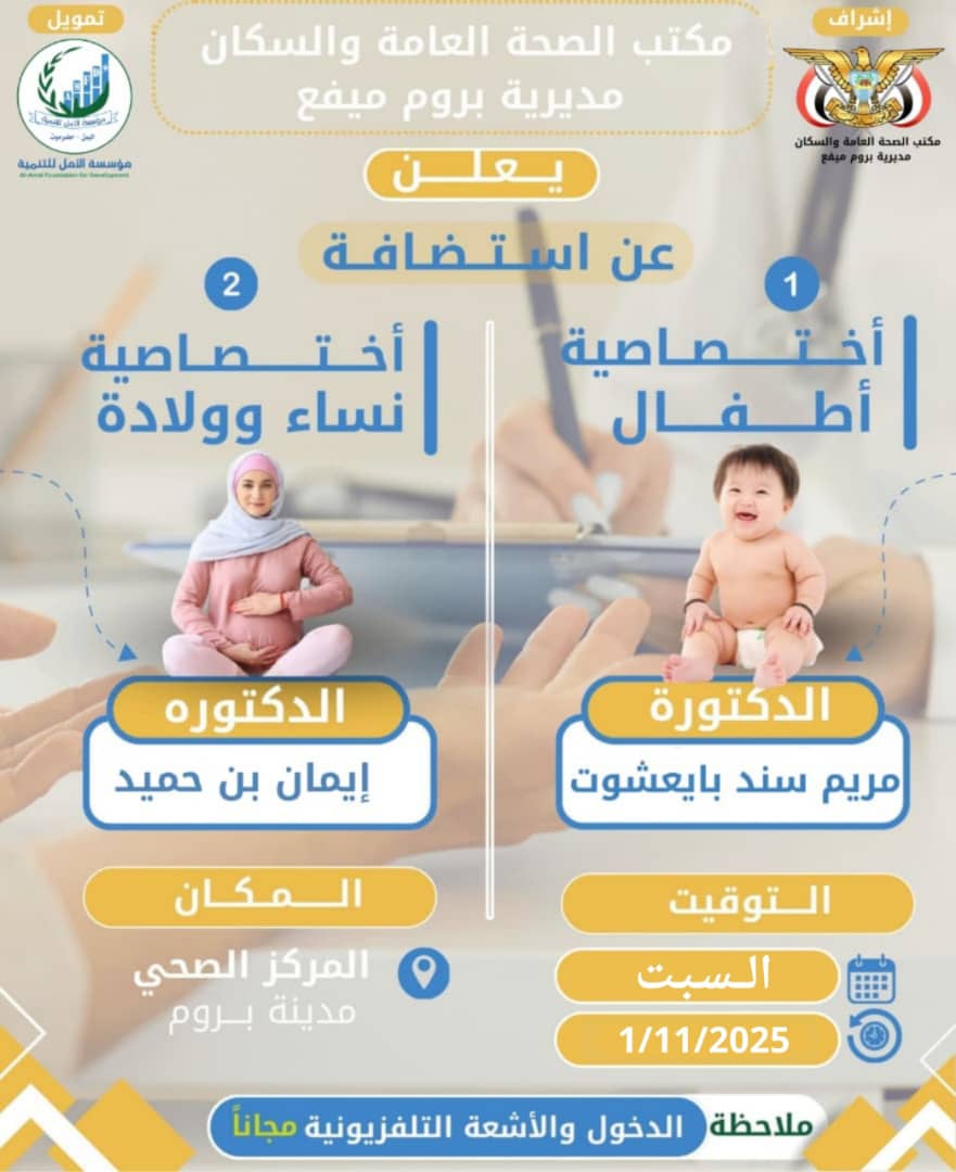 #إعلانadminأكتوبر 31, 2025الامل للتنمية #عيادة_نساء_وولادة #عيادة_أطفال #مؤسسة_الأمل_للتنمية شارك الموضوع على